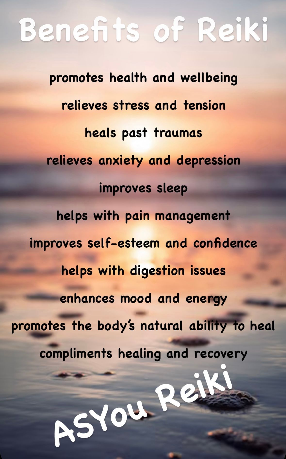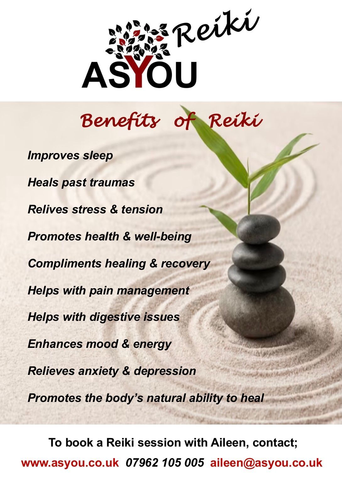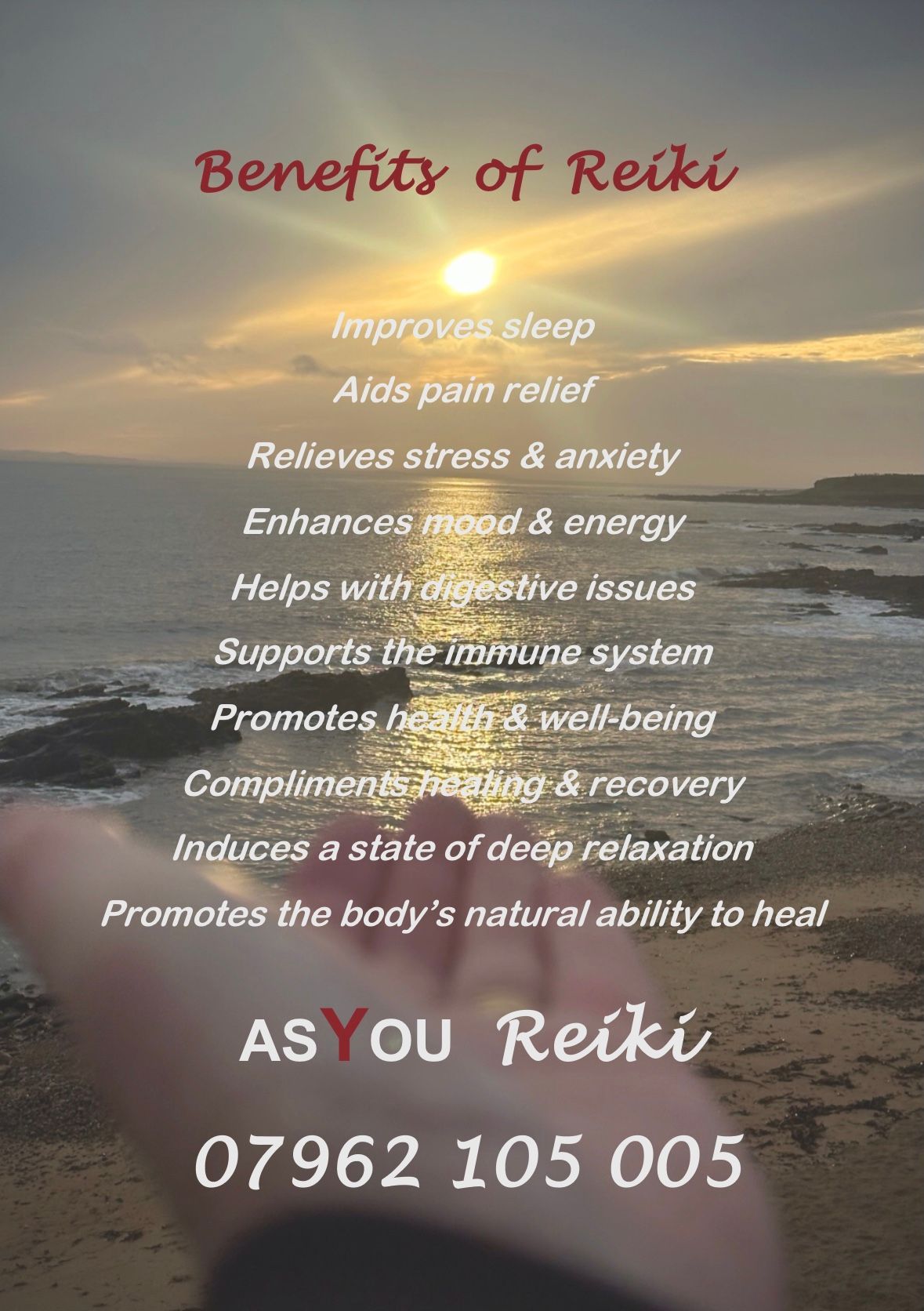 To find out more about ASYou or to arrange a Reiki session, or purchase a voucher, please complete the CONTACT section opposite or email me direct at