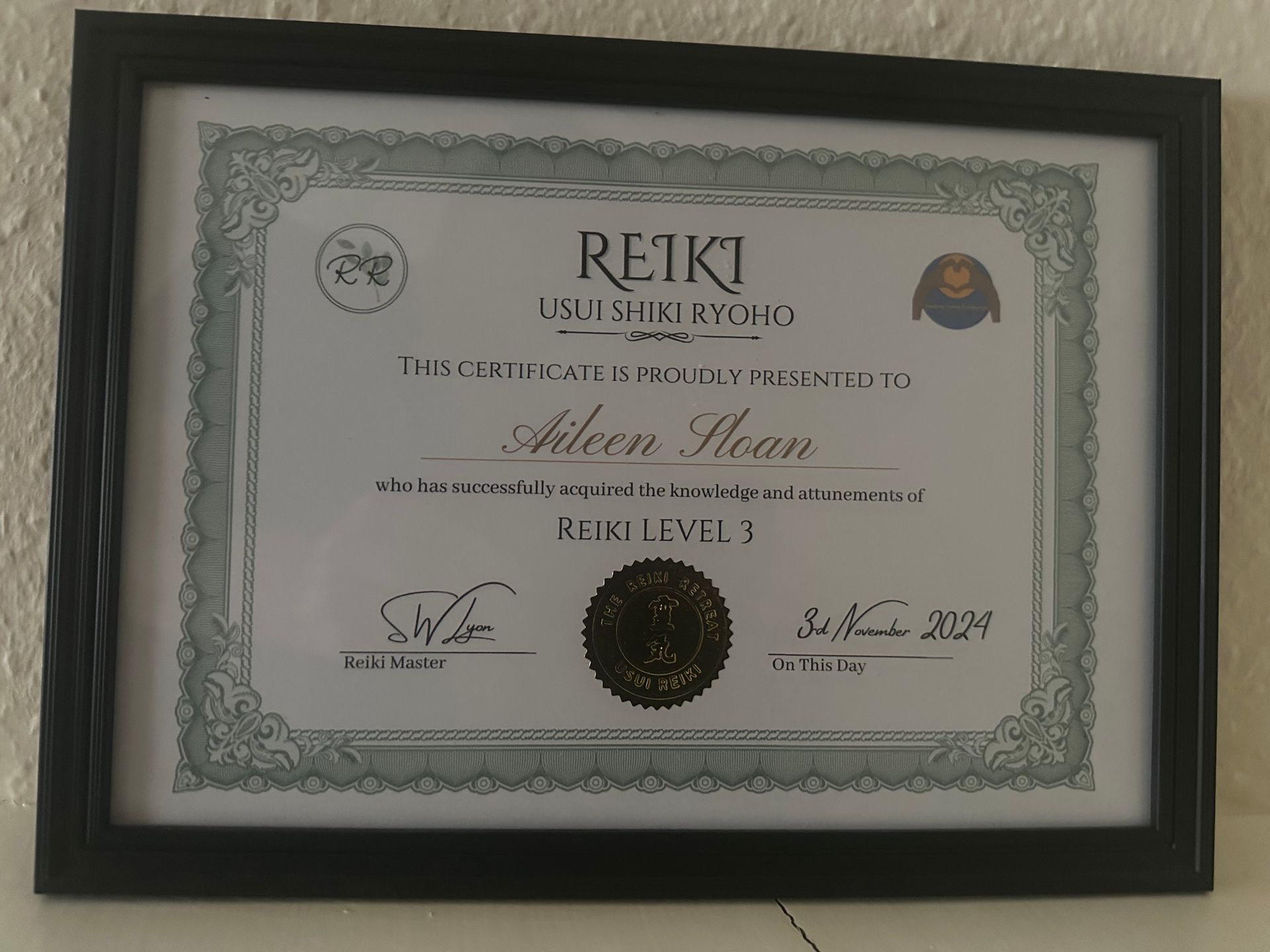 ASYou and a qualified Shinpiden, Usui Shiki Ryoho Reiki Master Practitioner under Level 3 attunements by Sara Lyon, Reiki Master Teacher at The Reiki Retreat, Stirling.